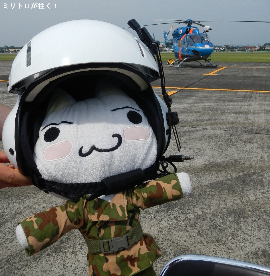 栃木県警のヘリコプターのヘルメットをお借りしましたニャ