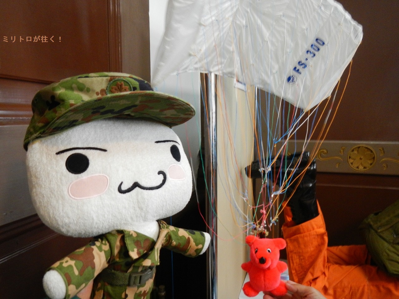 ふなっしーが落下傘を付けてるニャ!