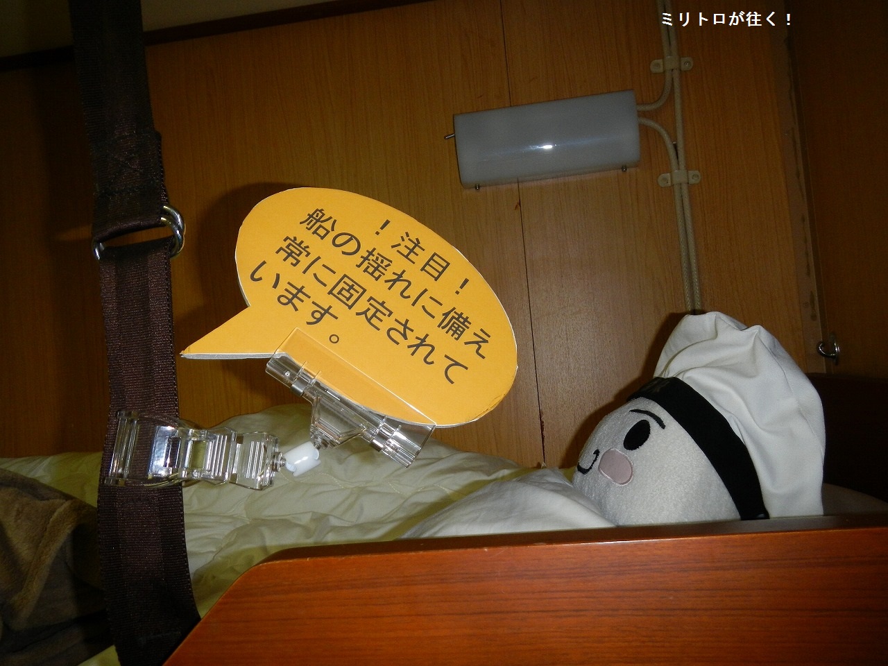 激しい揺れで物が落ちたり飛んで行ったりしないように、いろんなものが固定されていますニャ