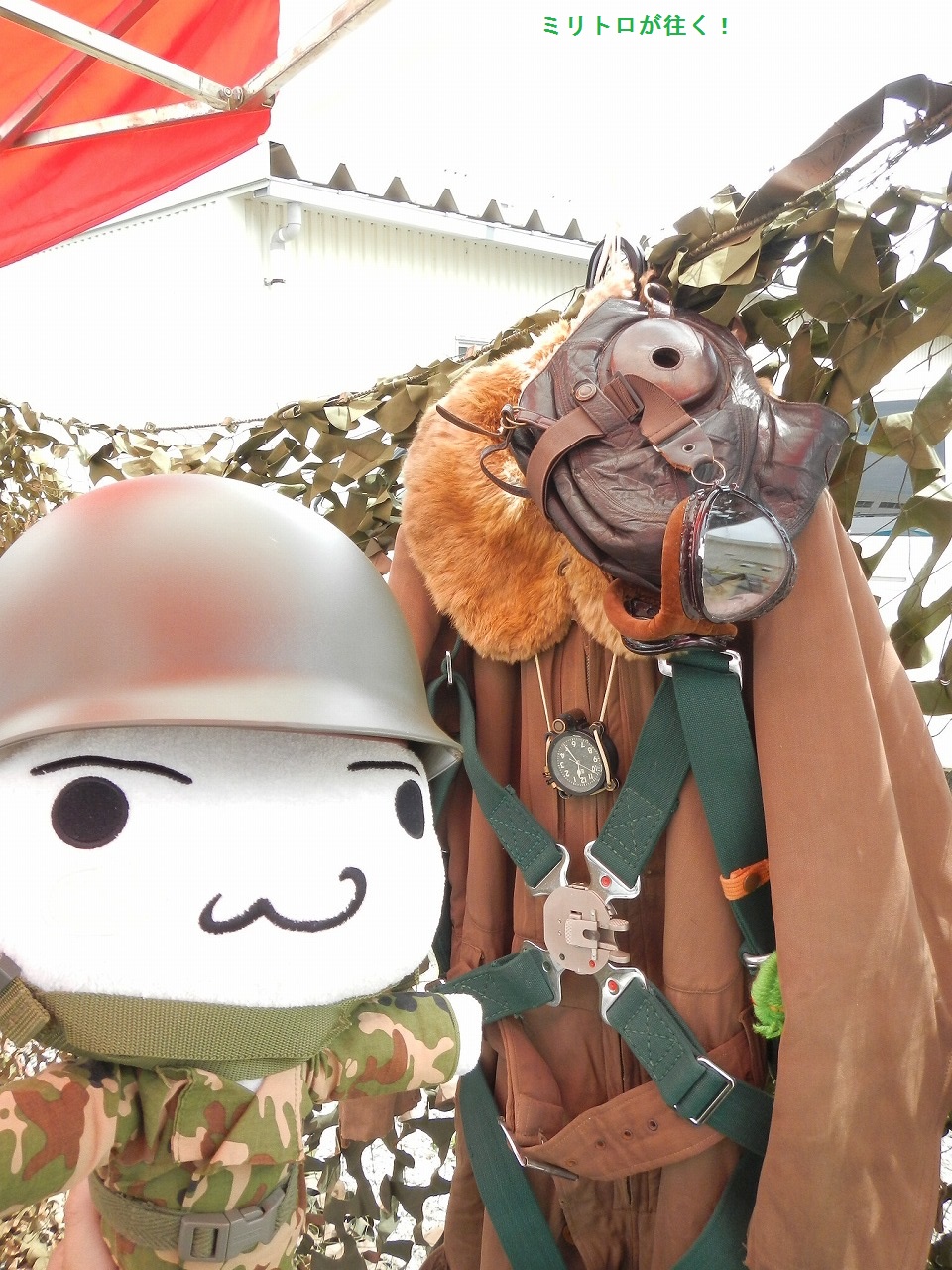 昔の飛行機乗りさんの服も展示されていましたニャ