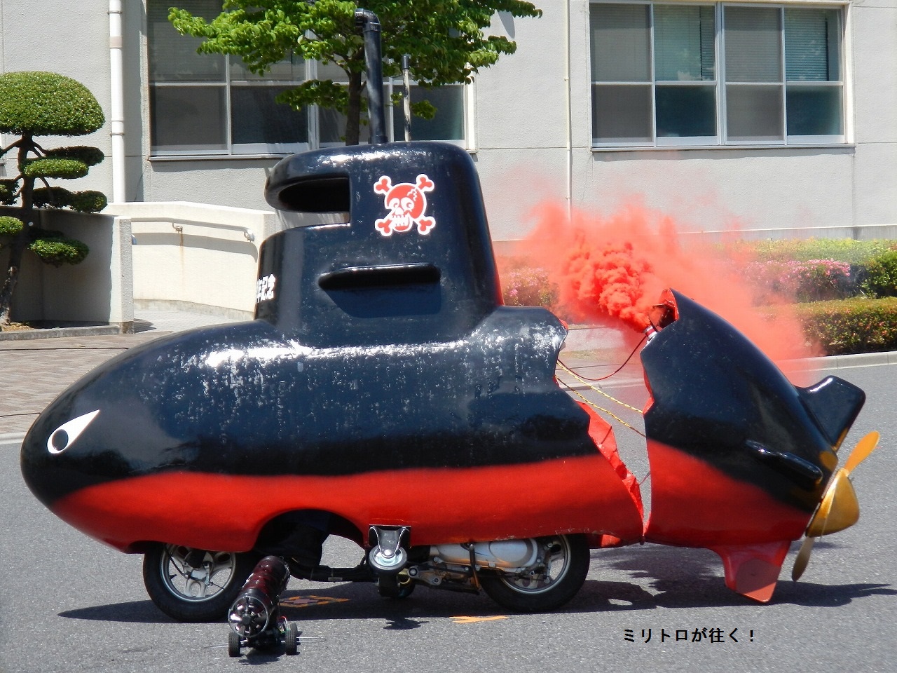 後ろには、防護衣を着た隊員さんが乗って、除染剤を噴霧できるようになっていますニャ