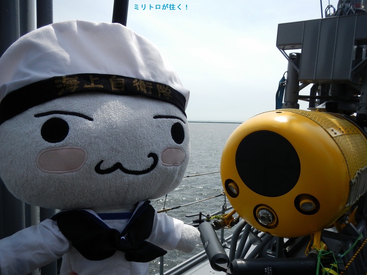 艦上からケーブルを接続してリモートコントロールで機雷を探して処分しますニャ