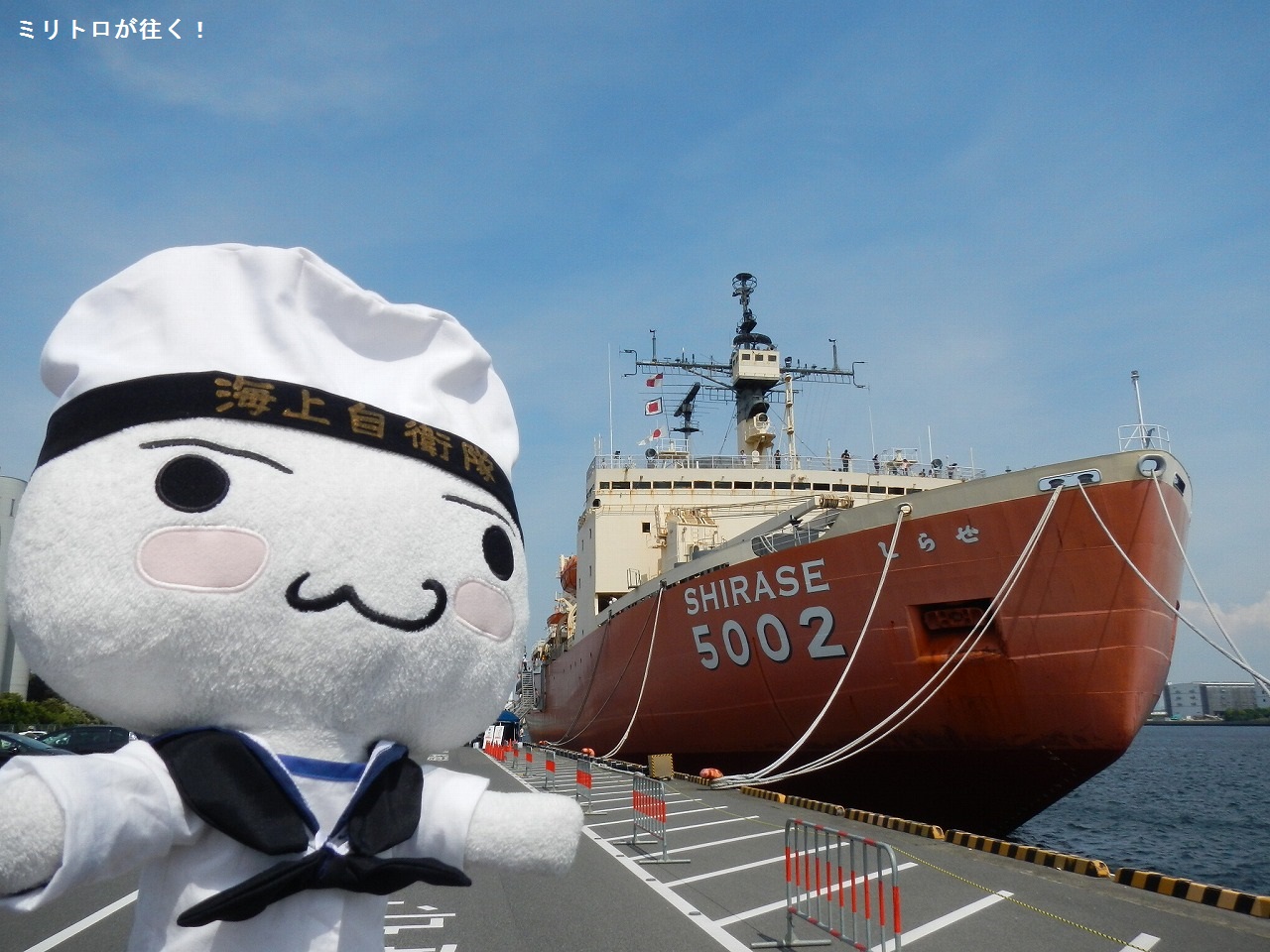 つしまさんのお隣では、先代の南極観測船しらせさんも展示されていますニャ