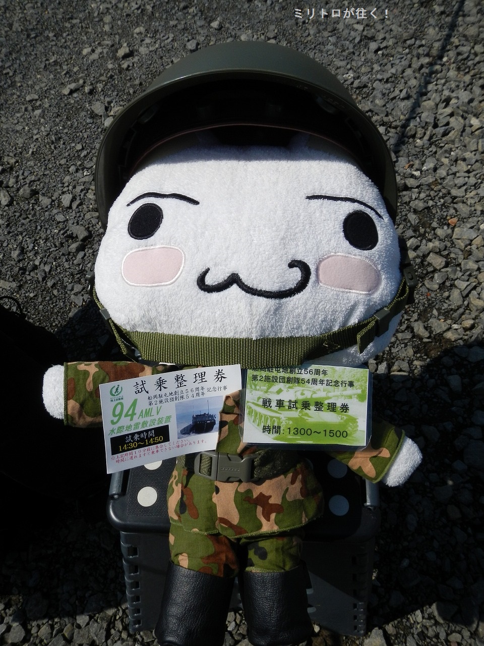 74式戦車さんと94式水際地雷施設装置さんの体験搭乗整理券ゲットしたニャ♪