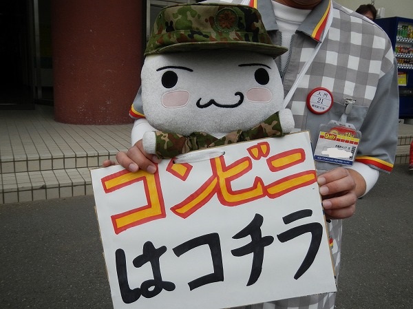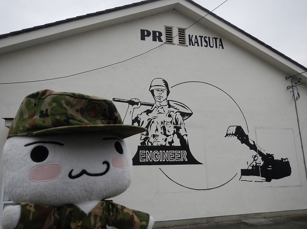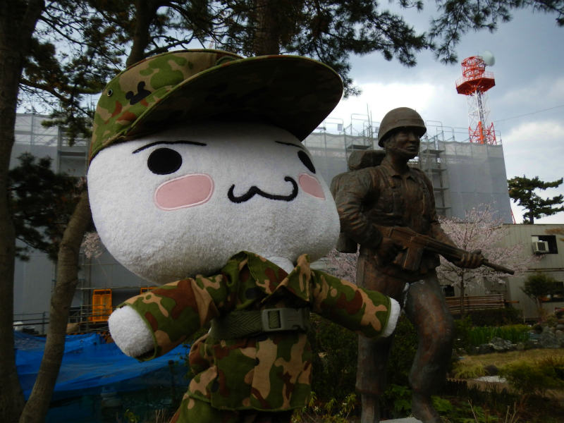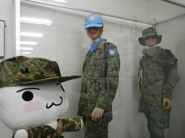海外派遣隊員の迷彩服を着た、笑顔がとっても素敵なマネキンにお出迎えされました