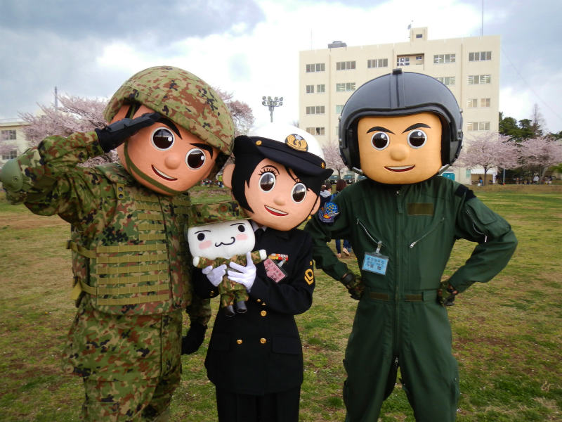 左から陸自の衛くん、海自の未来ちゃん、空自の翔くんニャ。