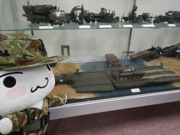陸上自衛隊で使われている、いろんな重機の模型が展示してありますニャ