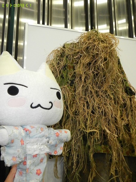 自衛隊コーナーでは手作りのギリースーツが展示されていました。