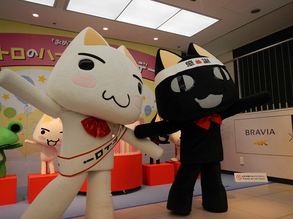 10日はトロが「ありがトロ!」タスキ、クロが「感謝」鉢巻をつけて登場ですニャ