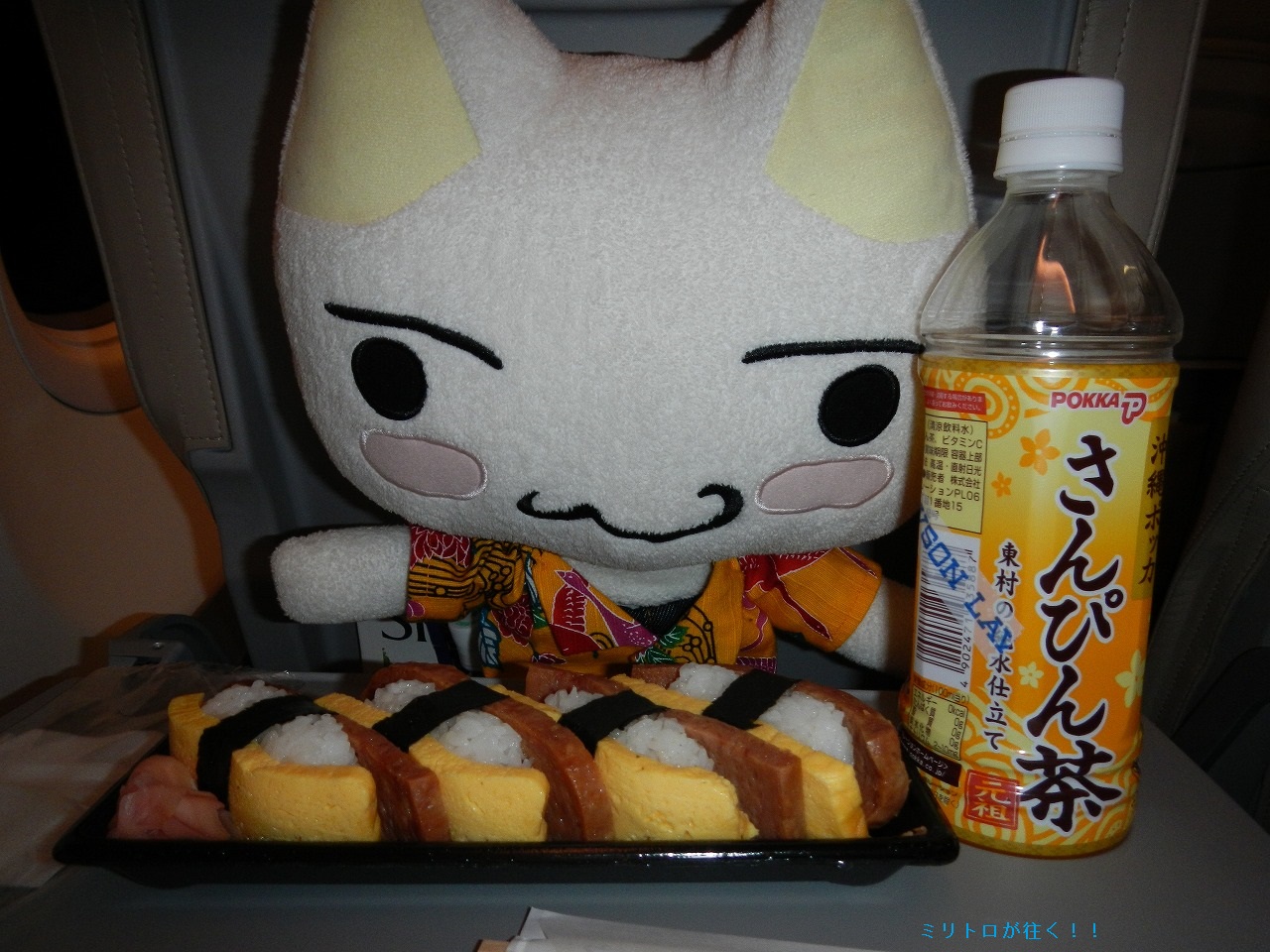 最後まで沖縄っぽいものを食べたかったので、ポーク卵むすびと、大東まつり寿司を買ったニャ