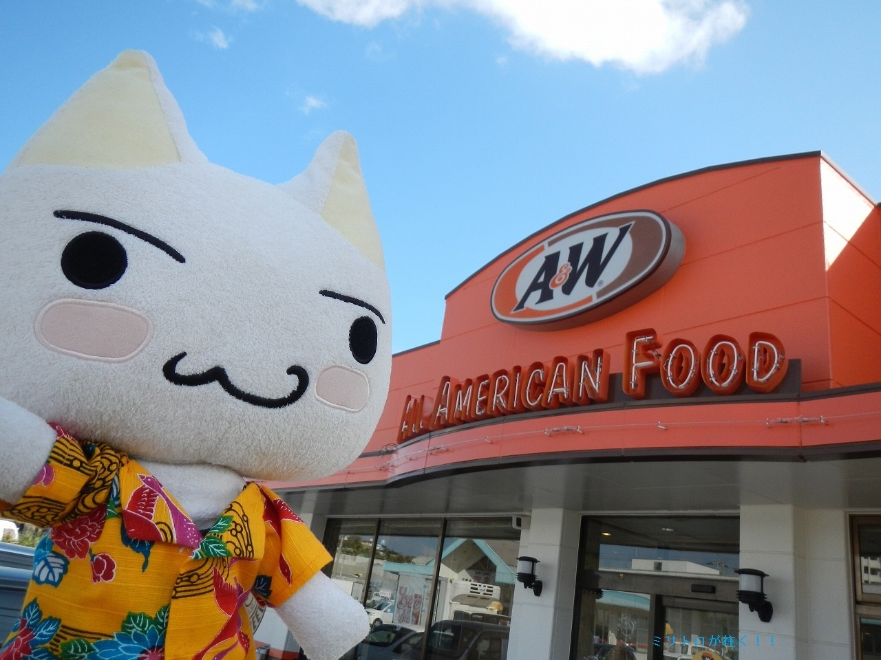 次の日は、A&Wのハンバーガーショップに行きましたニャ。
