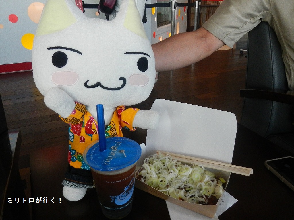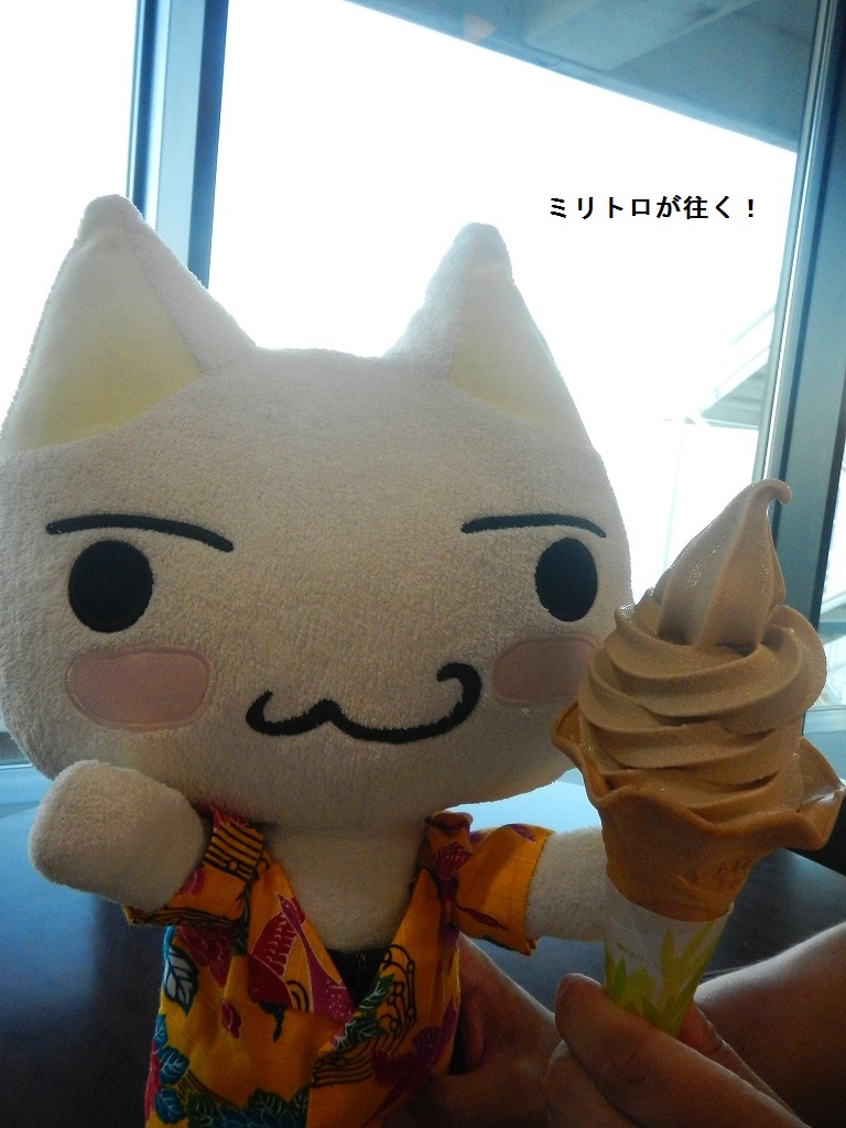 せっかく撮影用パネルがあったのに、お子様用らしくミリトロの顔が入らないニャ…
