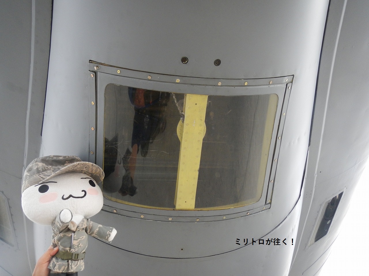 後部胴体にある窓から給油する飛行機を確認するのニャ