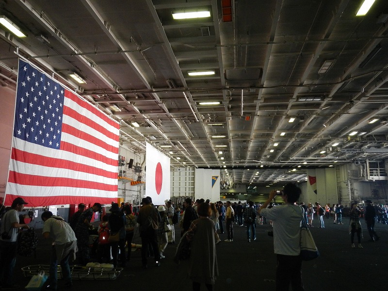 三笠公園で3時間以上並んで 、ようやっと空母ロナルド・レーガンさんの居る所までたどり付けましたニャ